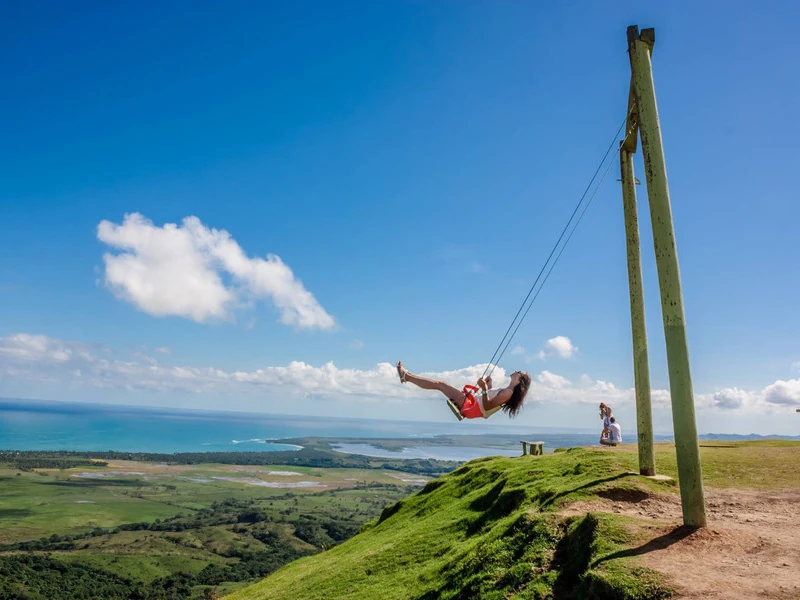 Desde Punta Cana/Bávaro, nos dirigimos al norte hacia la Cordillera Oriental. Nos da la bienvenida una carretera sinuosa y pavimentada que serpentea entre ondulantes y verdes tierras altas y pueblos rurales, a lo largo de la costa sur de la Bahía de Samaná. Mientras tanto, nuestro guía nos dará vida al mundo exterior, explicando las rutinas diarias de los dominicanos y destacando algunos de los productos naturales del país mientras pasamos por innumerables granjas agrícolas y ganaderas. Nuestra parada más destacada durante el recorrido es un ascenso aventurero al pico de 300 metros: Montaña Redonda . Conocida por sus impresionantes vistas, Montaña Redonda ofrece vistas inolvidables de Samaná al norte y de la Cordillera Oriental al sur.