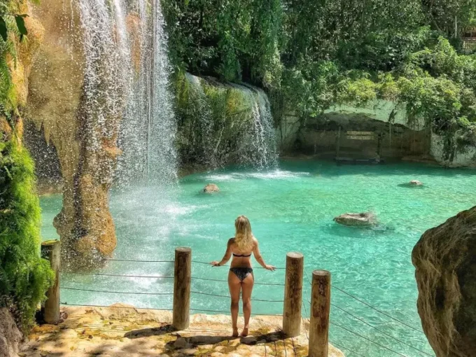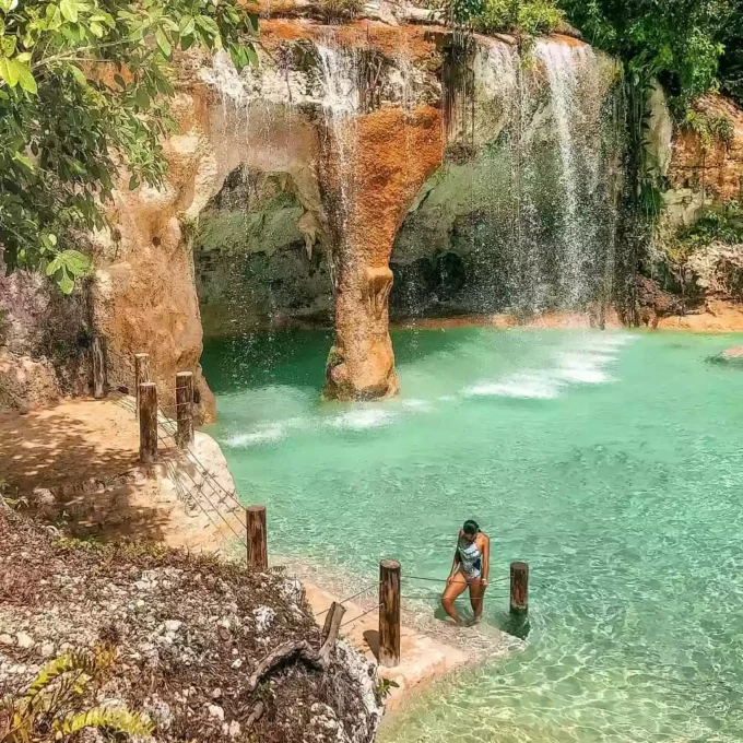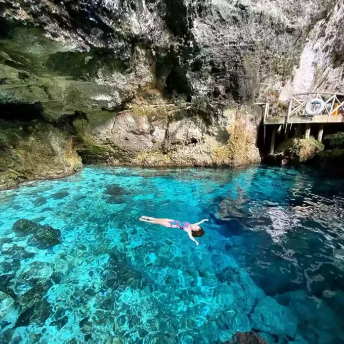 Eco Tour Hoyo Azul: Laguna natural de aguas cristalinas y azules al pie de un imponente acantilado. Sumérgete en estas frescas aguas, alimentadas por un embalse subterráneo.
