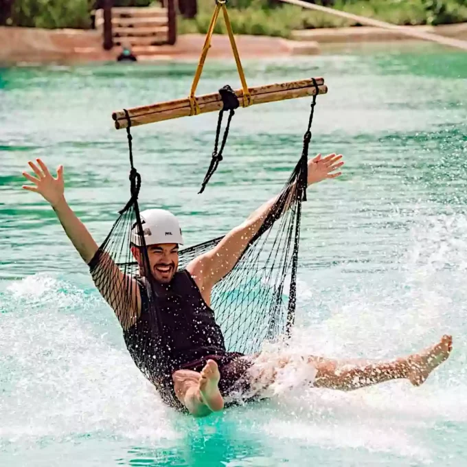 • Saltos Azules es simplemente incomparable: una enorme piscina y cascada creadas a partir de una cueva natural. Disfruta de plataformas de clavados, tirolesas colgantes, un columpio de cuerda de Tarzán y hamacas acuáticas en tirolesa. O simplemente relájate en una tumbona y disfruta de todo.